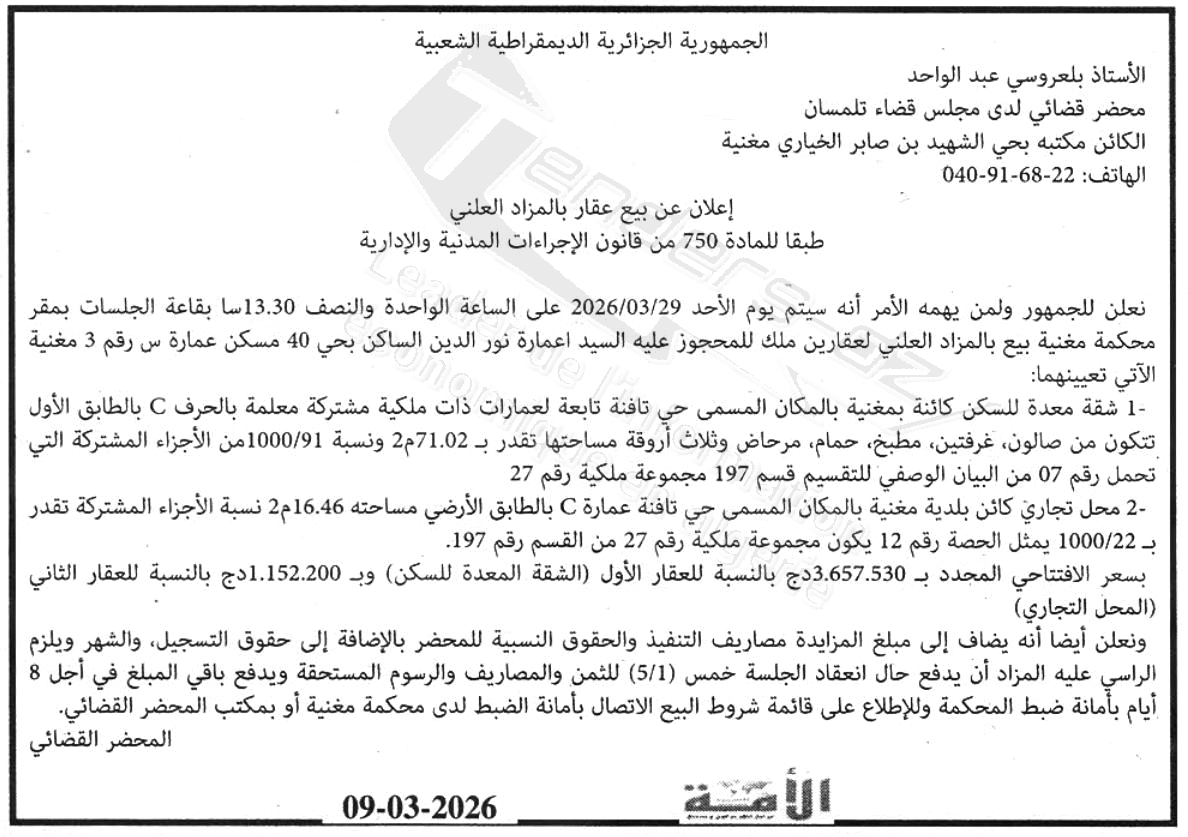 | Objet: Vente d'un immobilier | |