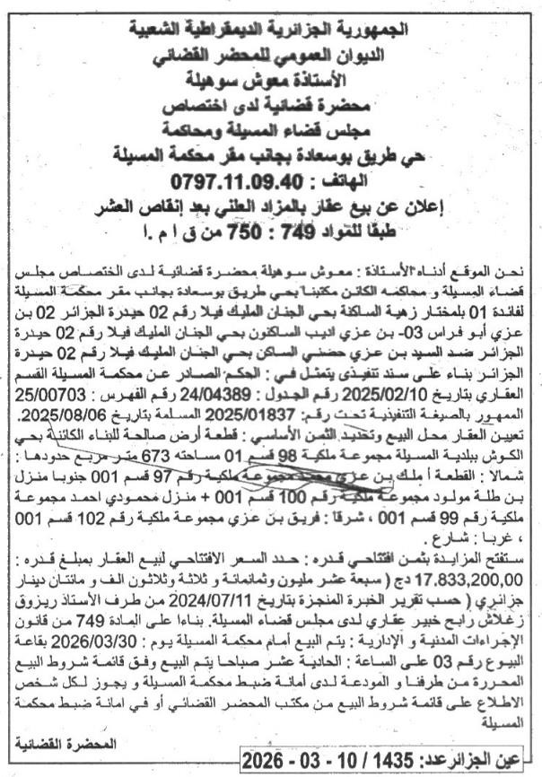 | Wilaya : MSila | |