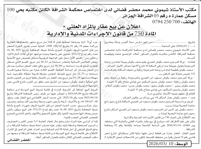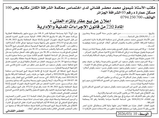 Il sera procédé à la vente au plus offrant et dernier enchérisseur le :