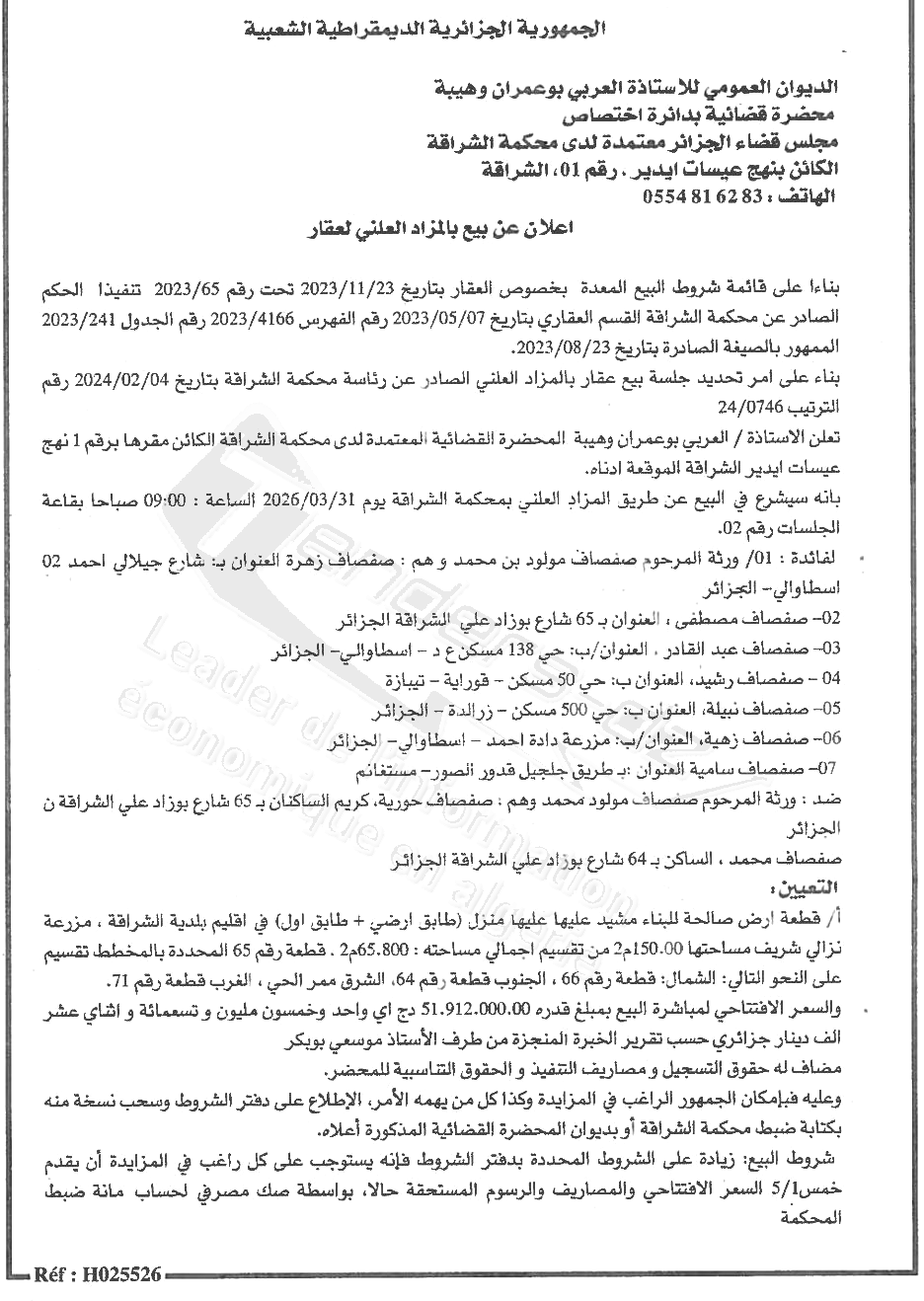 Il sera procédé à la vente au plus offrant et dernier enchérisseur le :