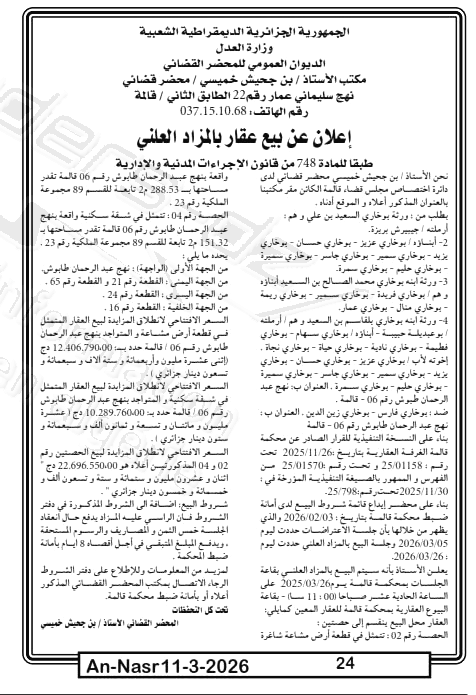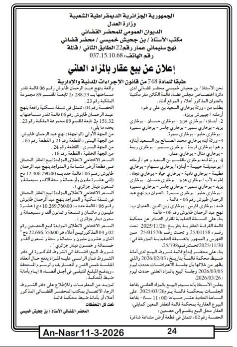 | Paru dans le journal : النصر | |