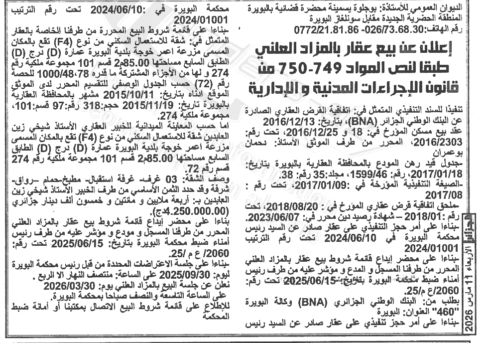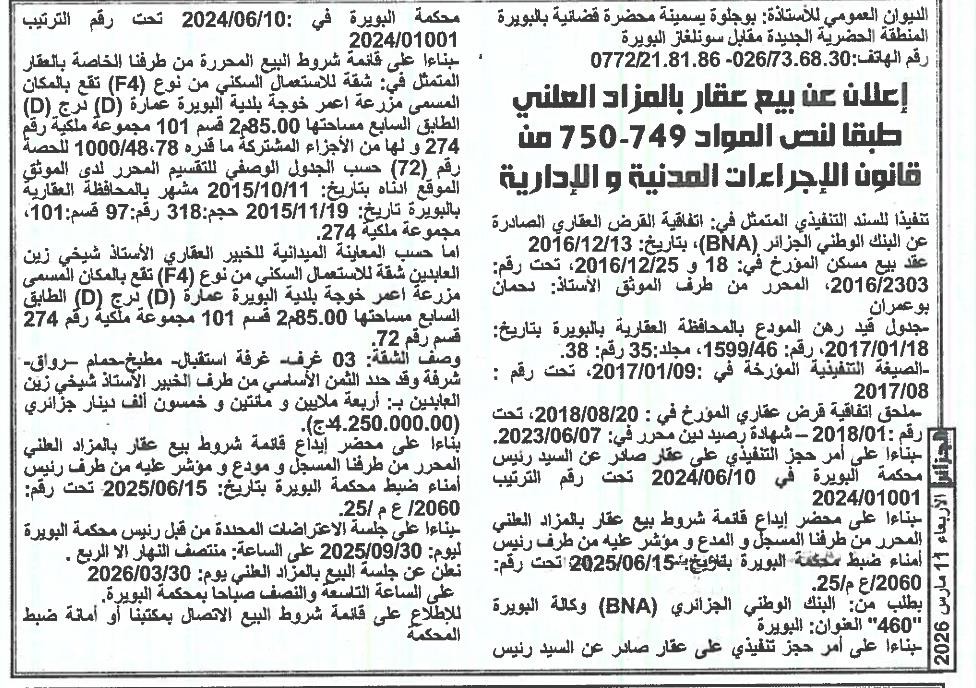 Il sera procédé à la vente au plus offrant et dernier enchérisseur le :