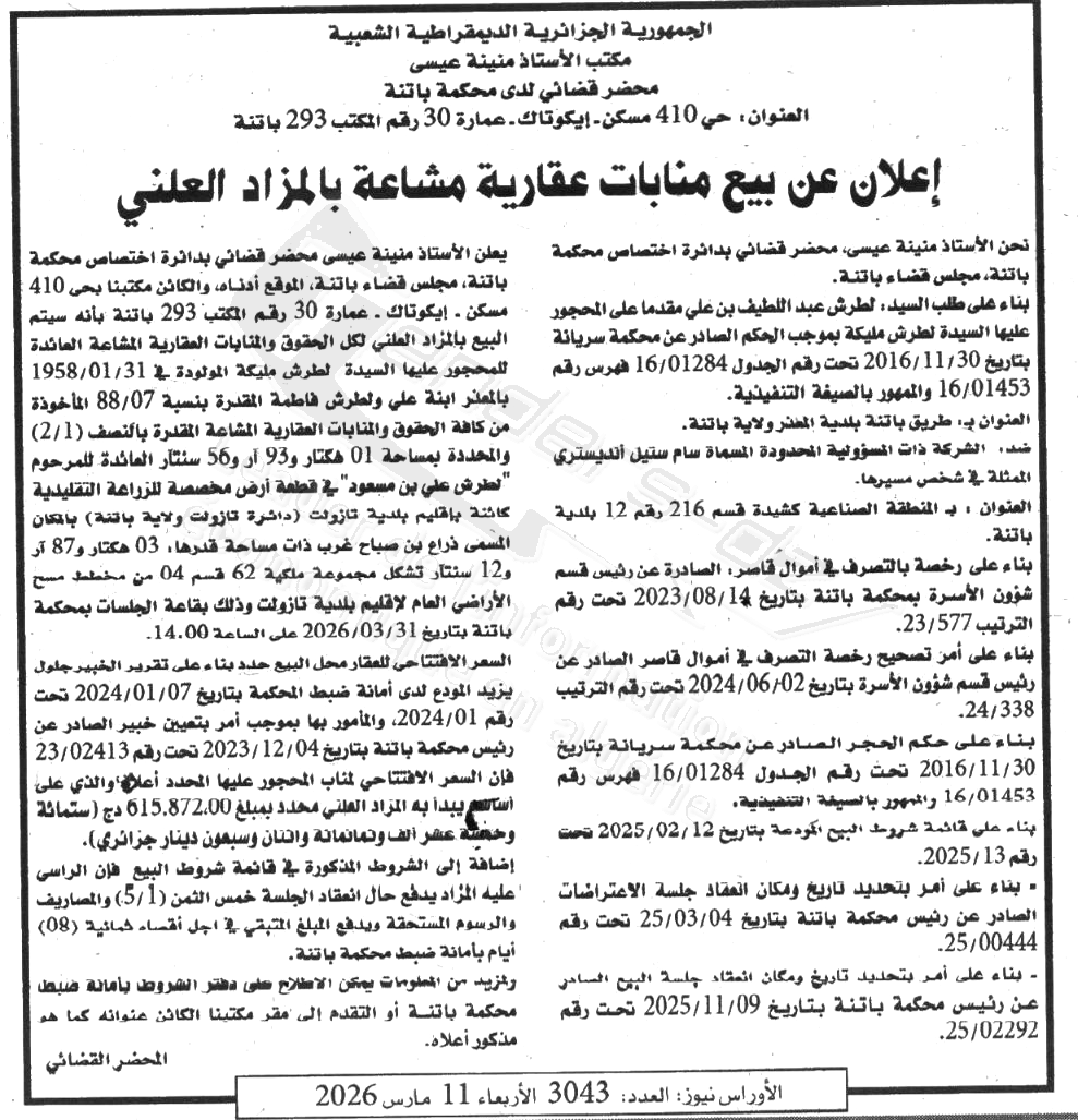Il sera procédé à la vente au plus offrant et dernier enchérisseur le :