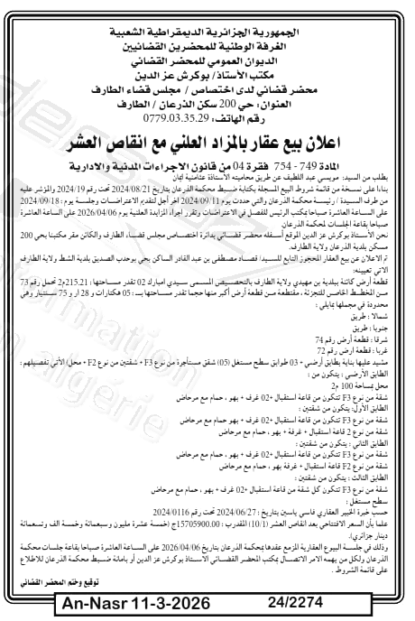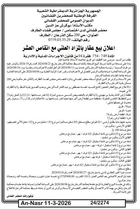 | Paru dans le journal : النصر | |