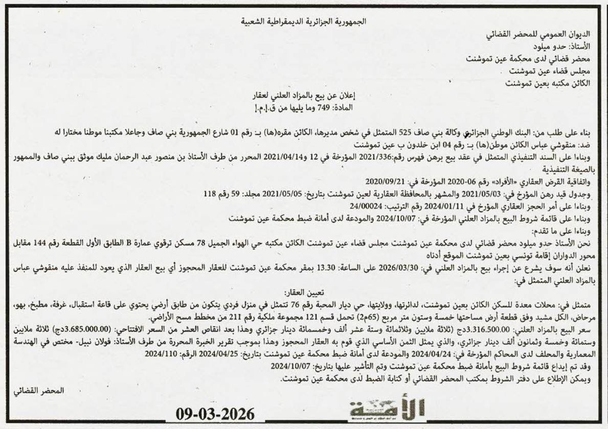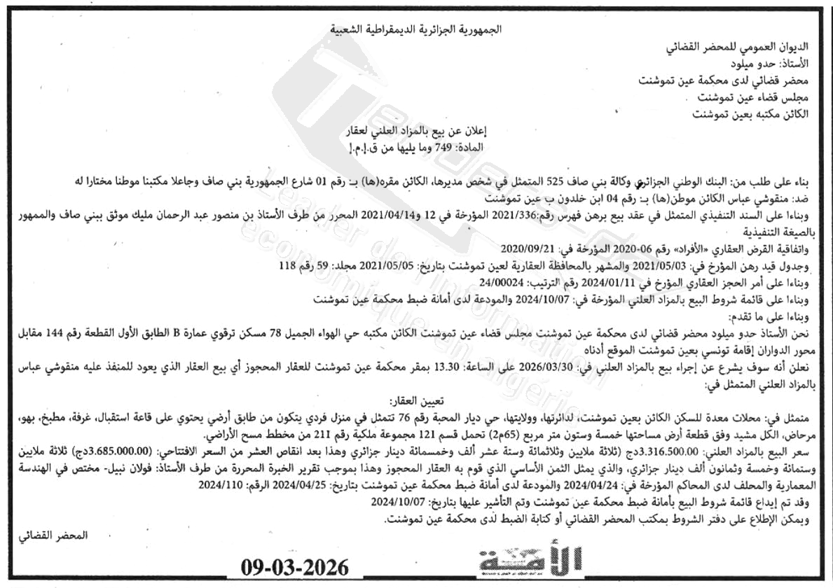 Il sera procédé à la vente au plus offrant et dernier enchérisseur le :