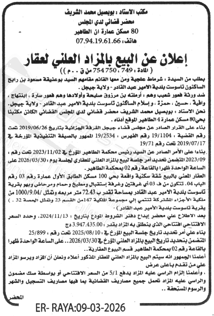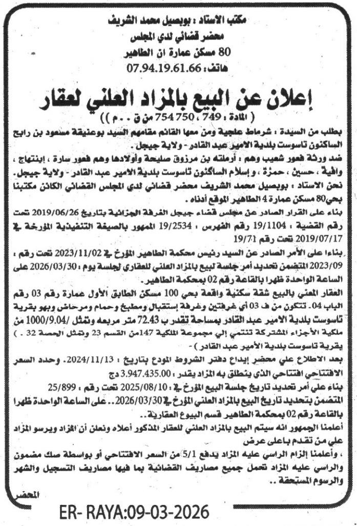 Il sera procédé à la vente au plus offrant et dernier enchérisseur le :