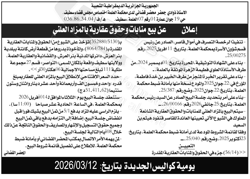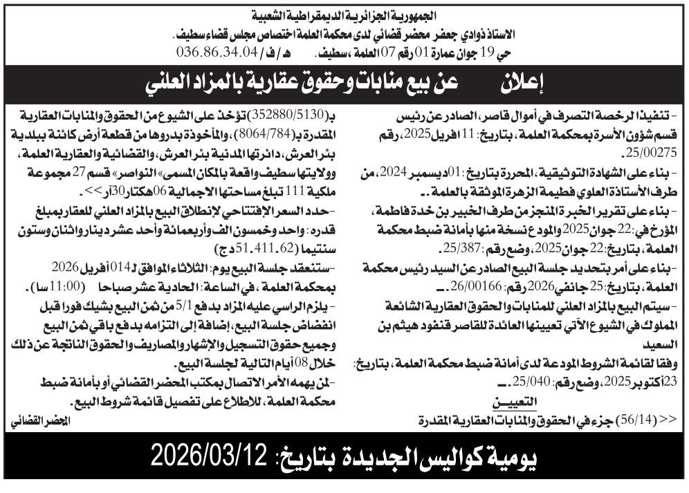 Il sera procédé à la vente au plus offrant et dernier enchérisseur le :