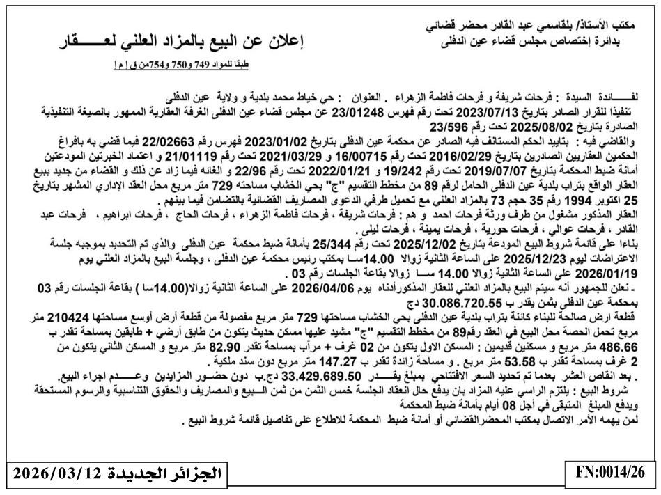 | Paru dans le journal : الجزائر الجديدة | |