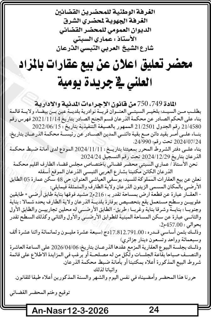 | Paru dans le journal : النصر | |