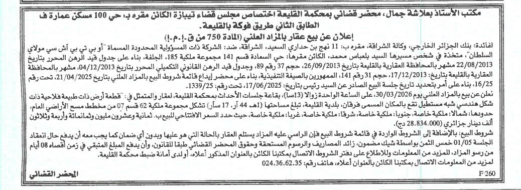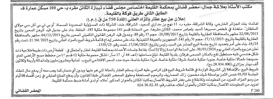 Il sera procédé à la vente au plus offrant et dernier enchérisseur le :