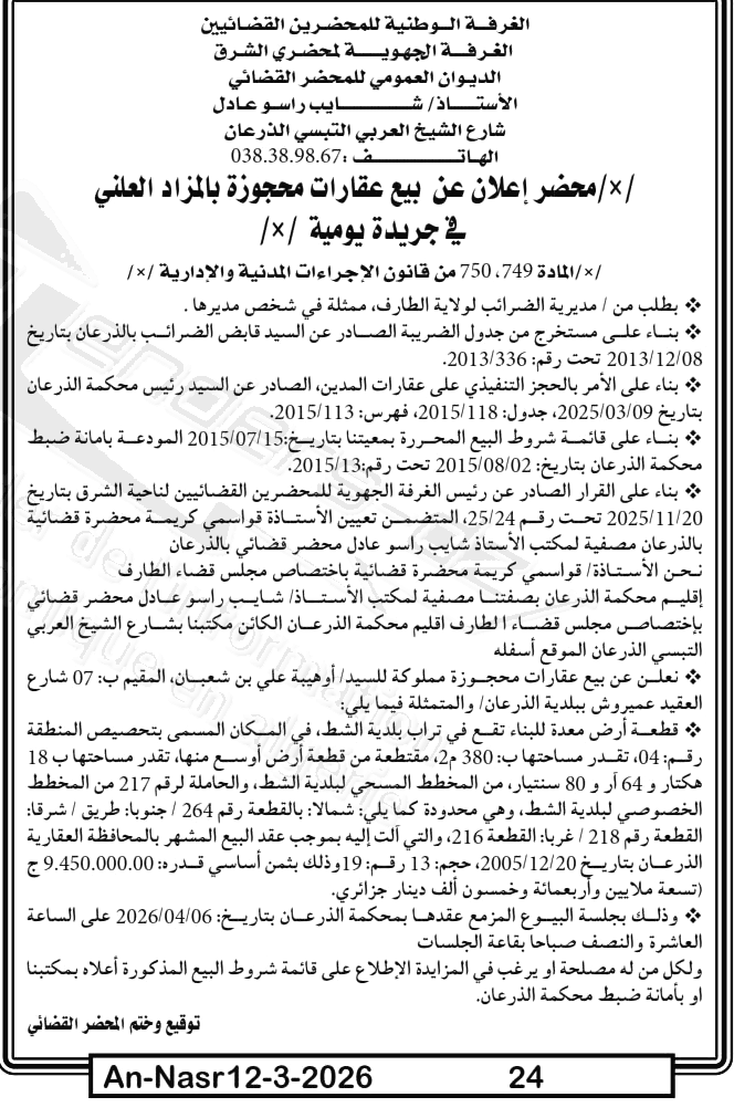 | Paru dans le journal : النصر | |