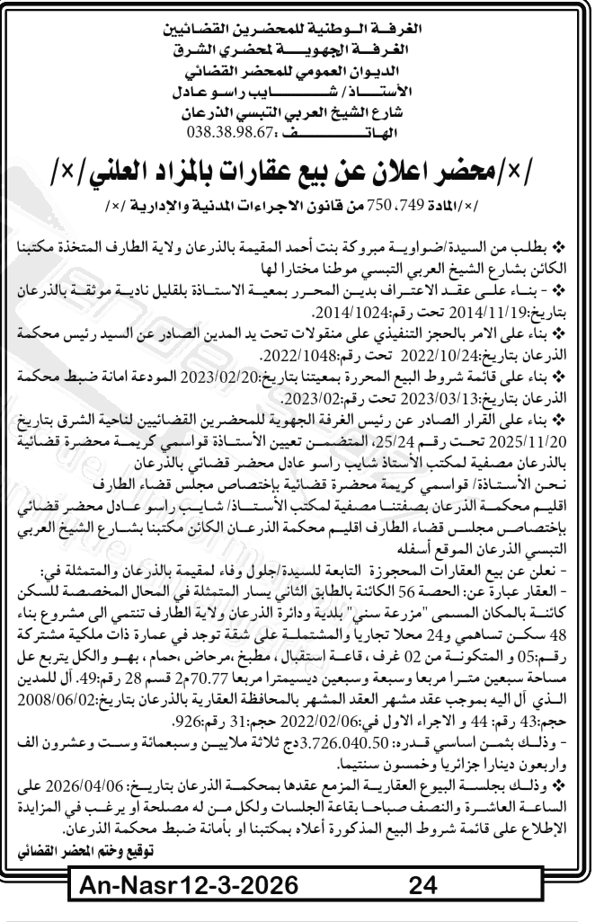 | Paru dans le journal : النصر | |
