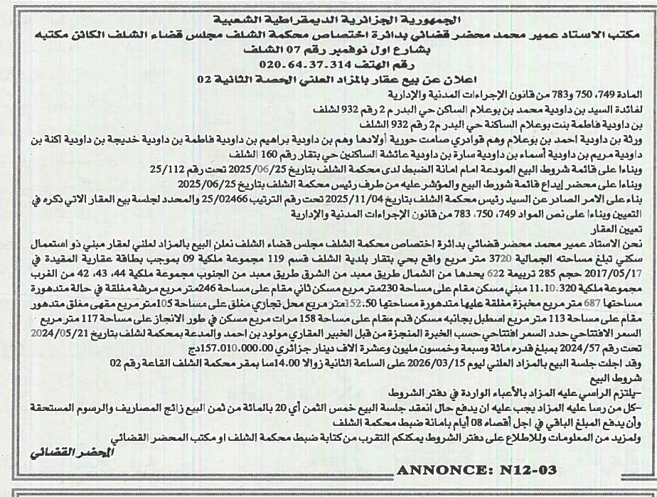 | Wilaya : Chlef | |