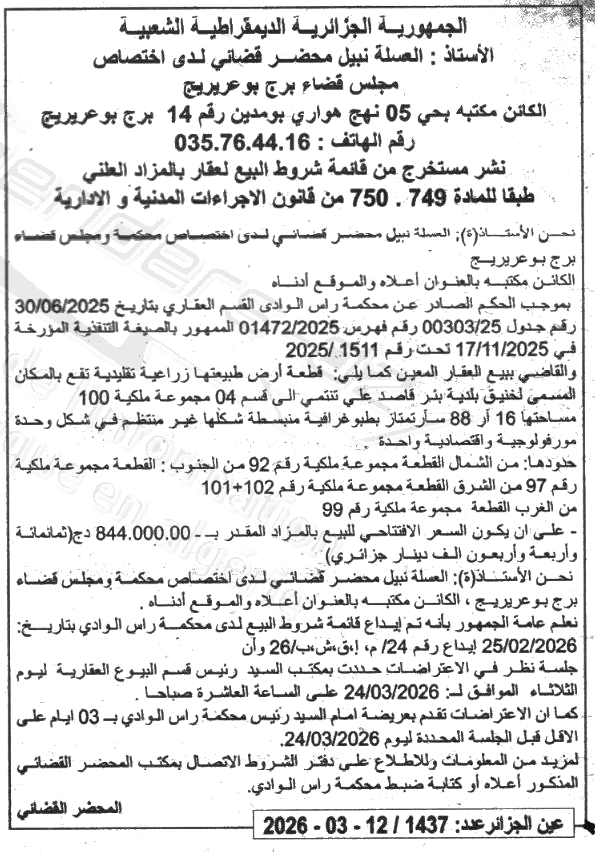 Il sera procédé à la vente au plus offrant et dernier enchérisseur le :