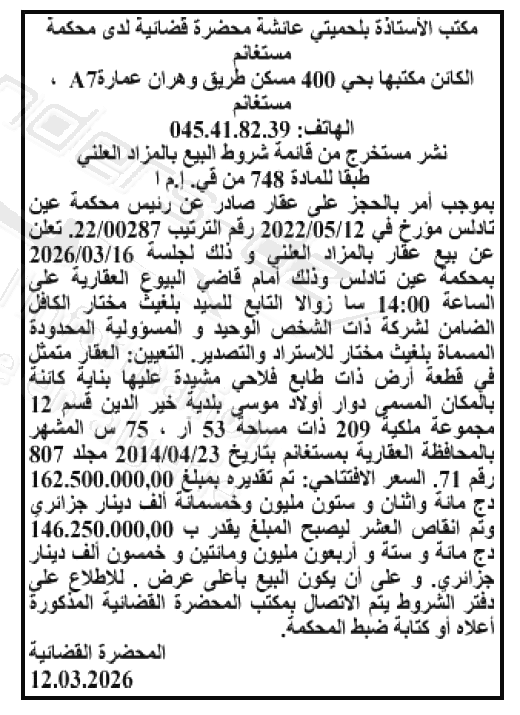 | Wilaya : Mostaganem | |