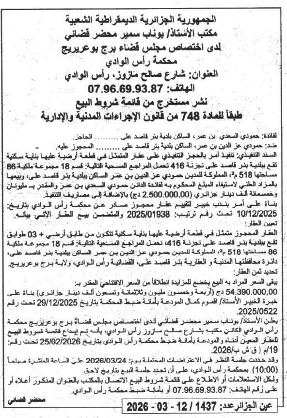 Il sera procédé à la vente au plus offrant et dernier enchérisseur le :