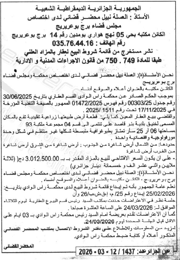 Il sera procédé à la vente au plus offrant et dernier enchérisseur le : 24/03/2026';
