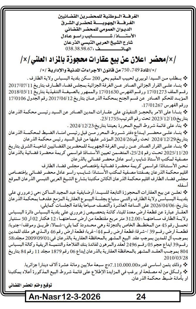 Il sera procédé à la vente au plus offrant et dernier enchérisseur le :