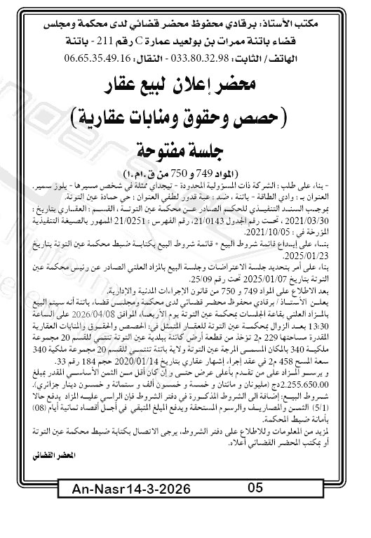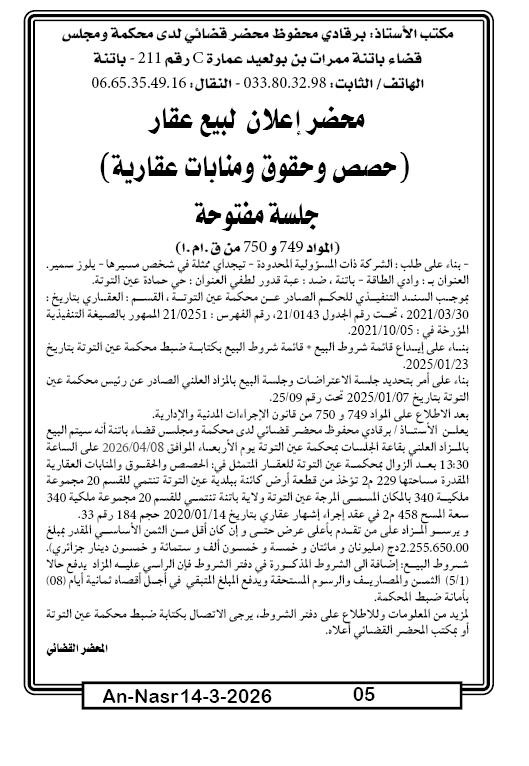 | Paru dans le journal : النصر | |