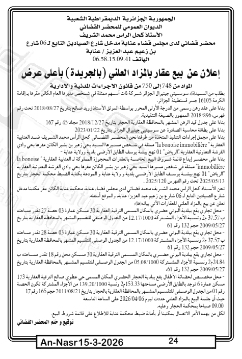 | Paru dans le journal : النصر | |