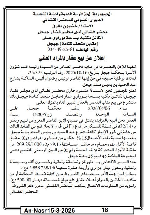 | Paru dans le journal : النصر | |