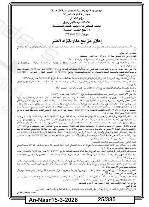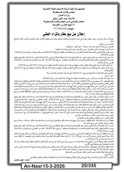 Il sera procédé à la vente au plus offrant et dernier enchérisseur le :