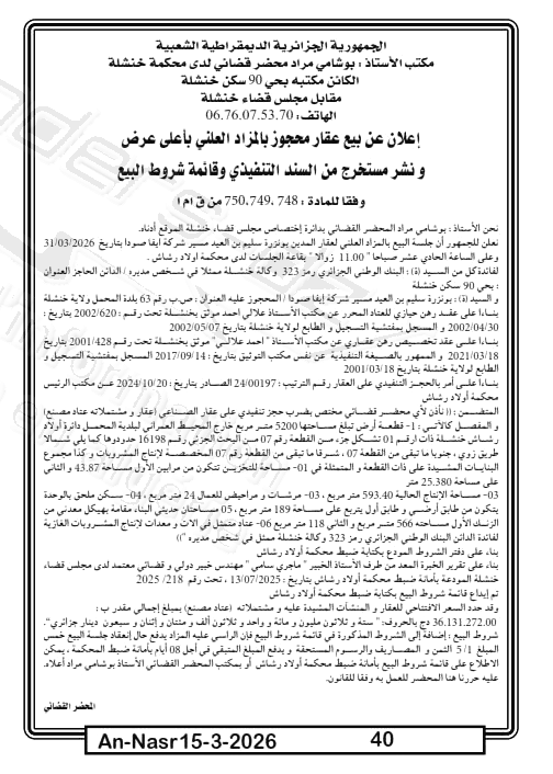 | Paru dans le journal : النصر | |
