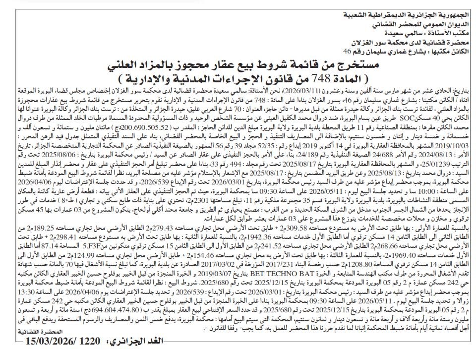 Il sera procédé à la vente au plus offrant et dernier enchérisseur le :