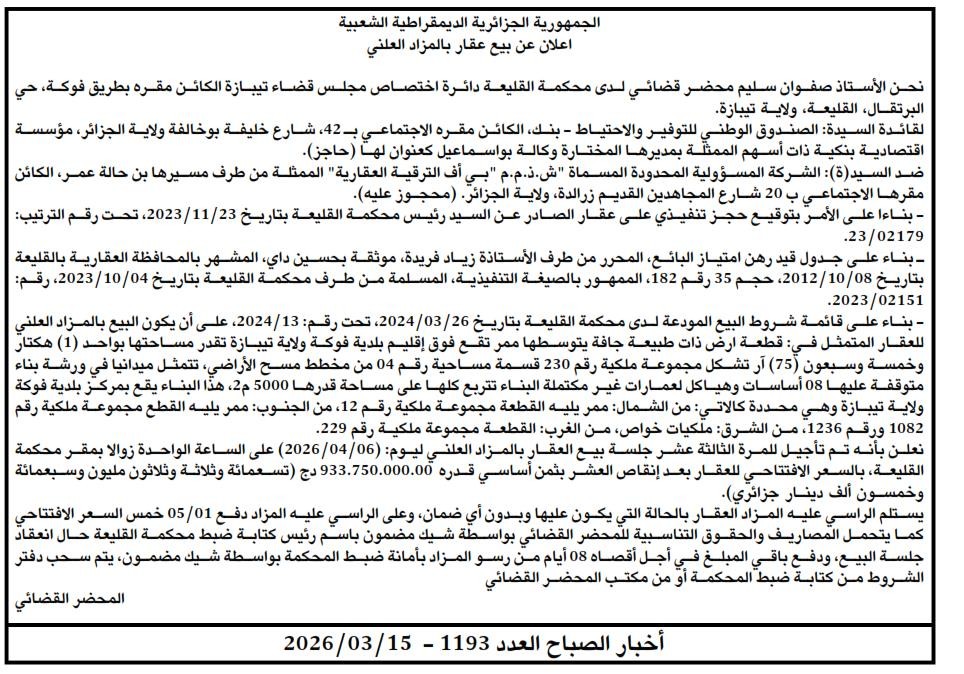 | Paru dans le journal : اخبار الصباح | |