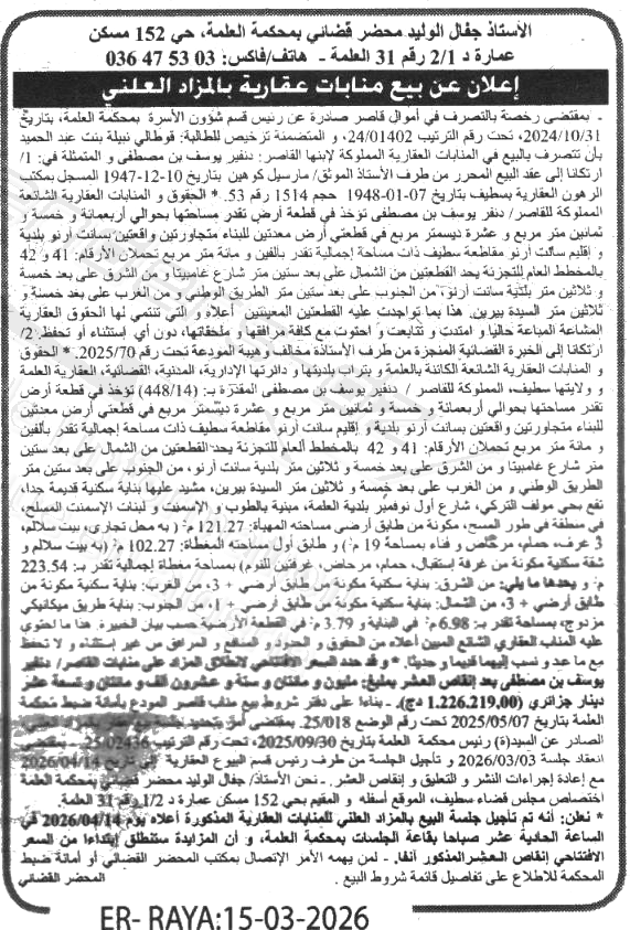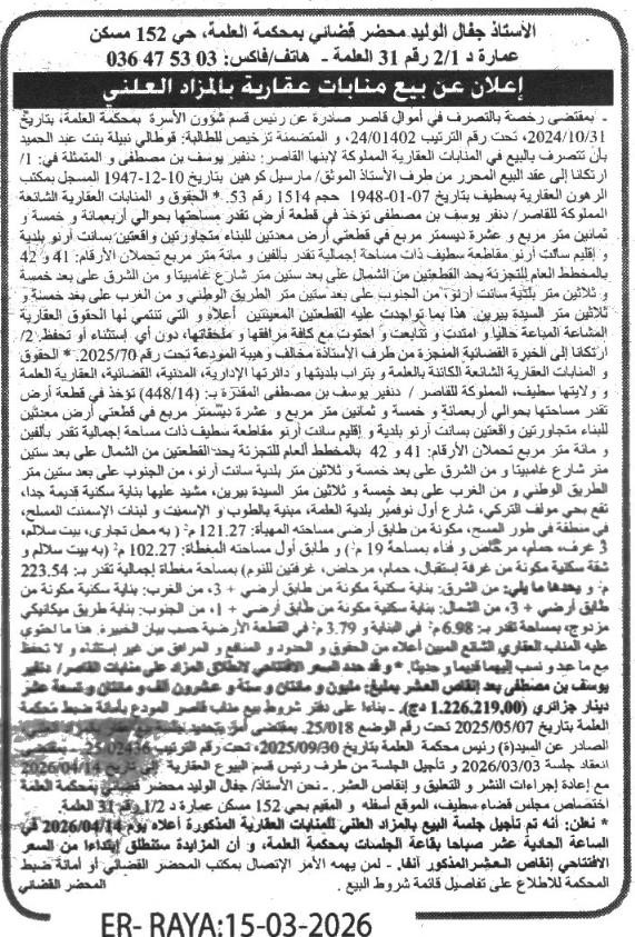 Il sera procédé à la vente au plus offrant et dernier enchérisseur le :