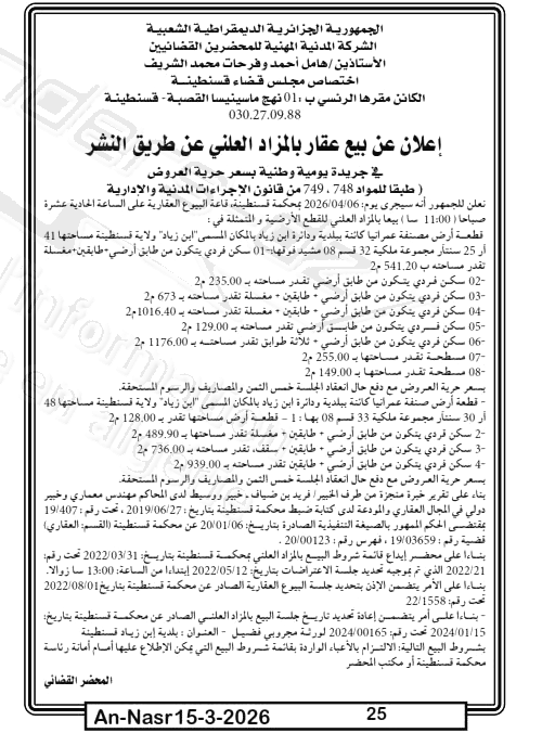Il sera procédé à la vente au plus offrant et dernier enchérisseur le :