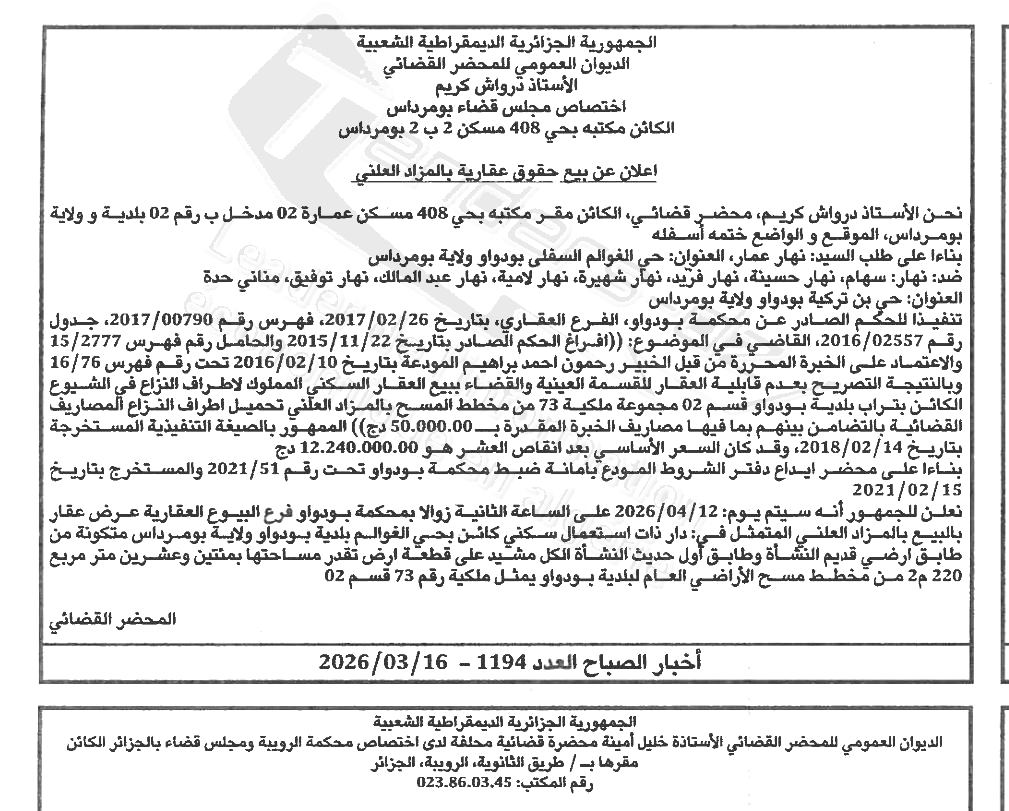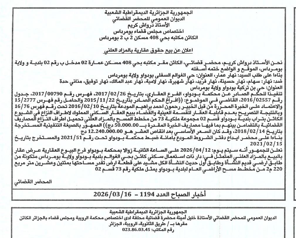 | Paru dans le journal : اخبار الصباح | |