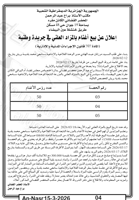 | Paru dans le journal : النصر | |