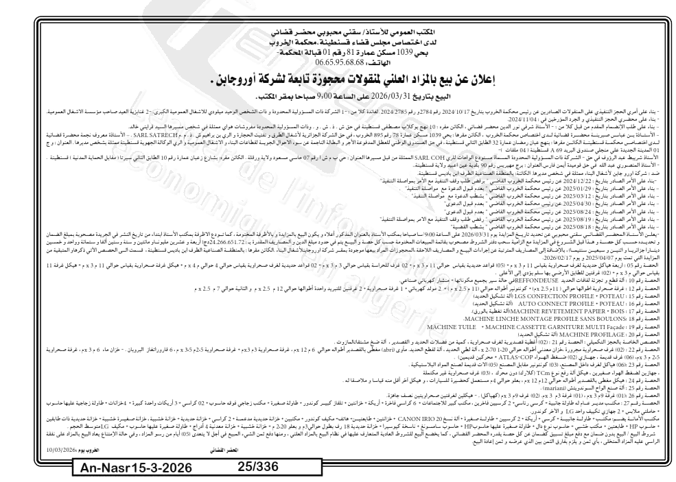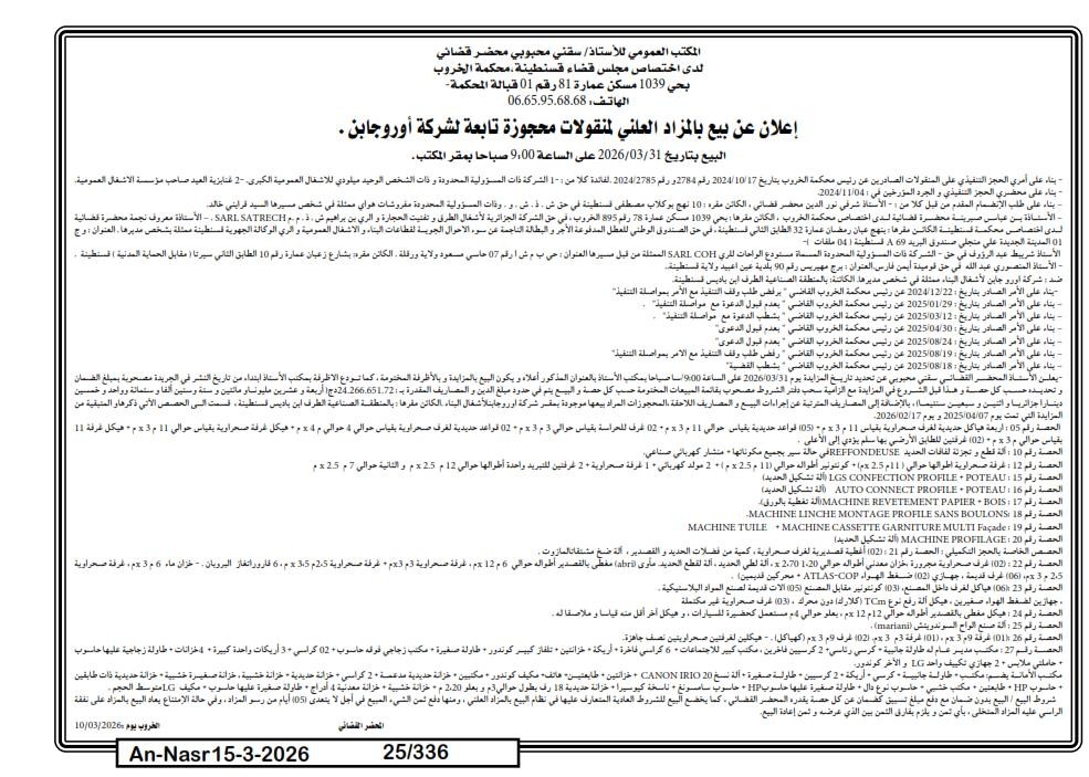 | Paru dans le journal : النصر | |