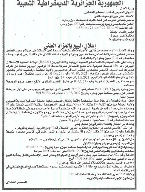 Il sera procédé à la vente au plus offrant et dernier enchérisseur le :