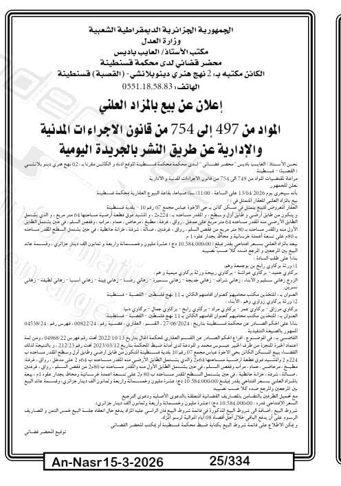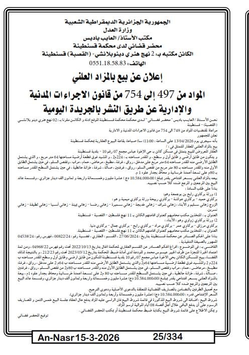 | Paru dans le journal : النصر | |