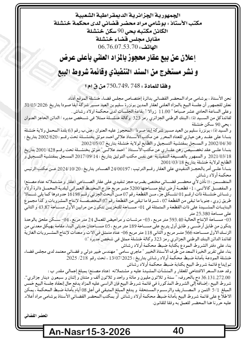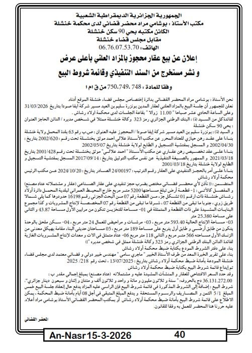Il sera procédé à la vente au plus offrant et dernier enchérisseur le :