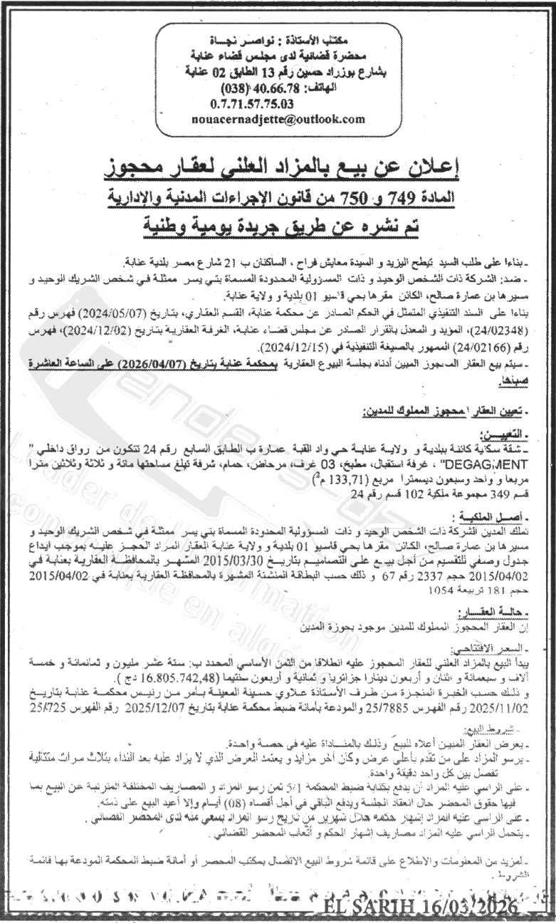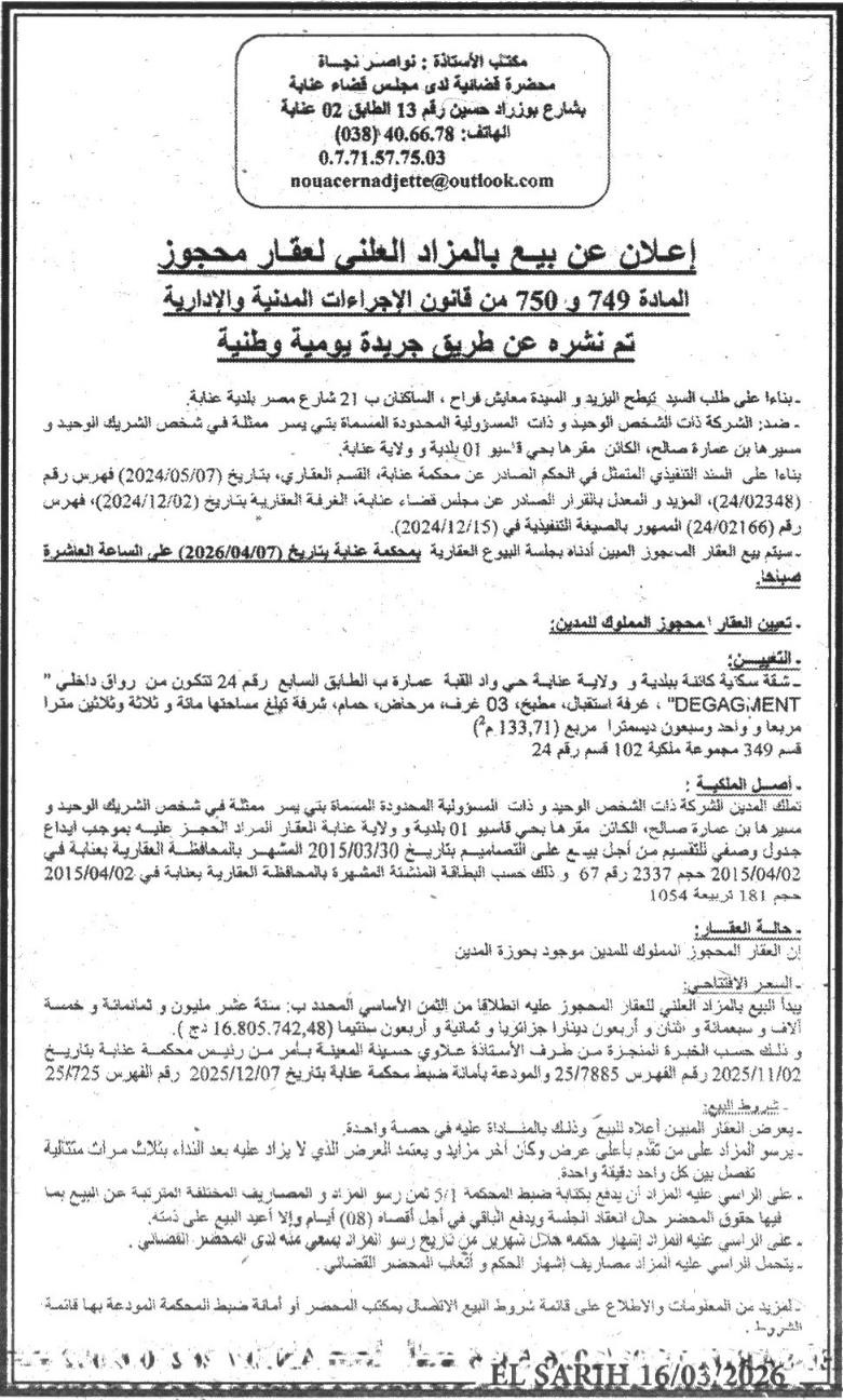 | Wilaya : Annaba | |