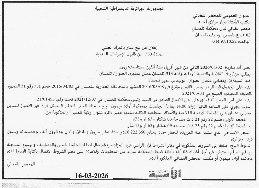 | Date Publication : 16/03/2026 | |