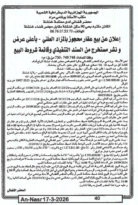 | Paru dans le journal : النصر | |