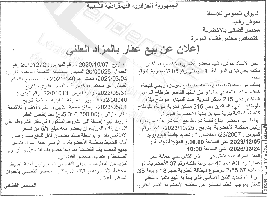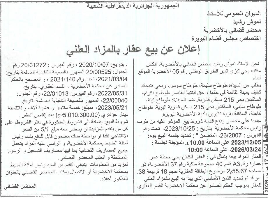 | Paru dans le journal : الجزائر | |
