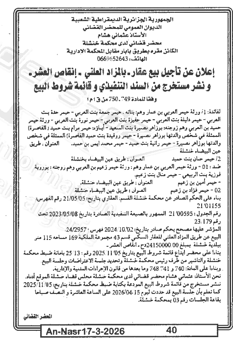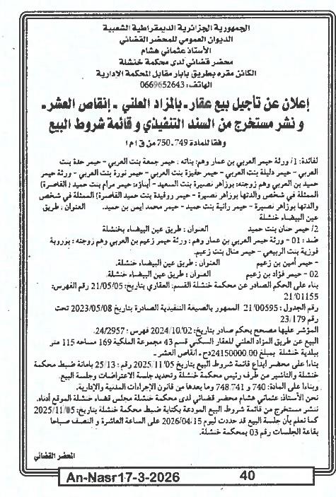 | Paru dans le journal : النصر | |