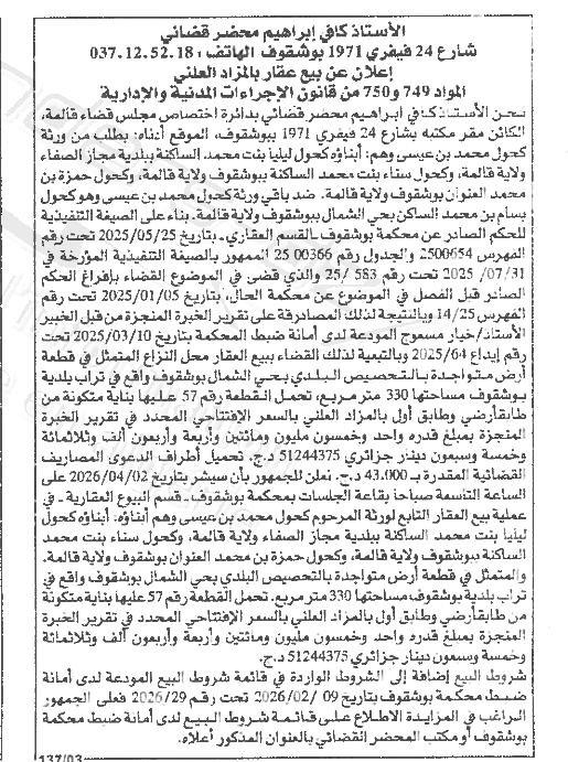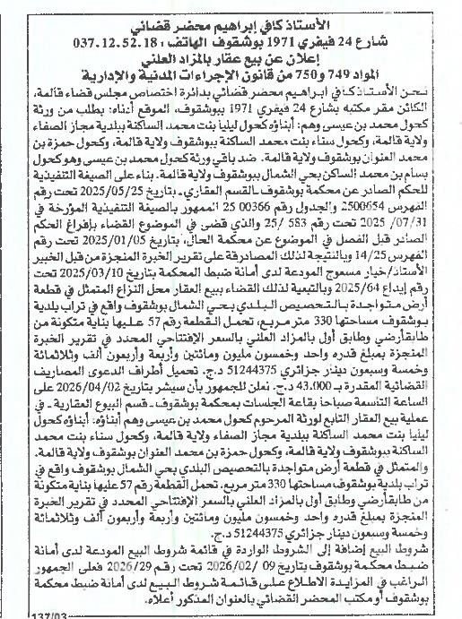 Il sera procédé à la vente au plus offrant et dernier enchérisseur le :