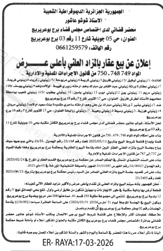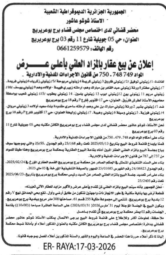 Il sera procédé à la vente au plus offrant et dernier enchérisseur le :