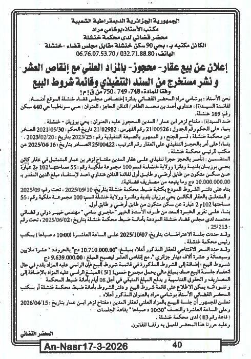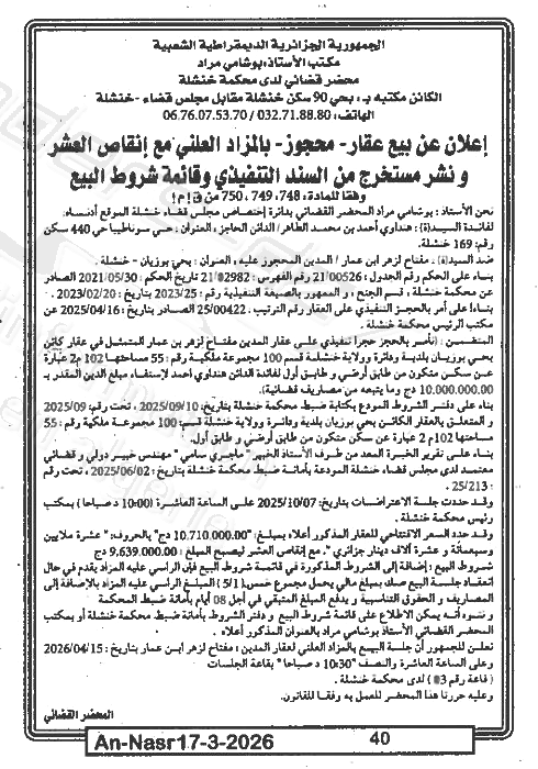 Il sera procédé à la vente au plus offrant et dernier enchérisseur le :
