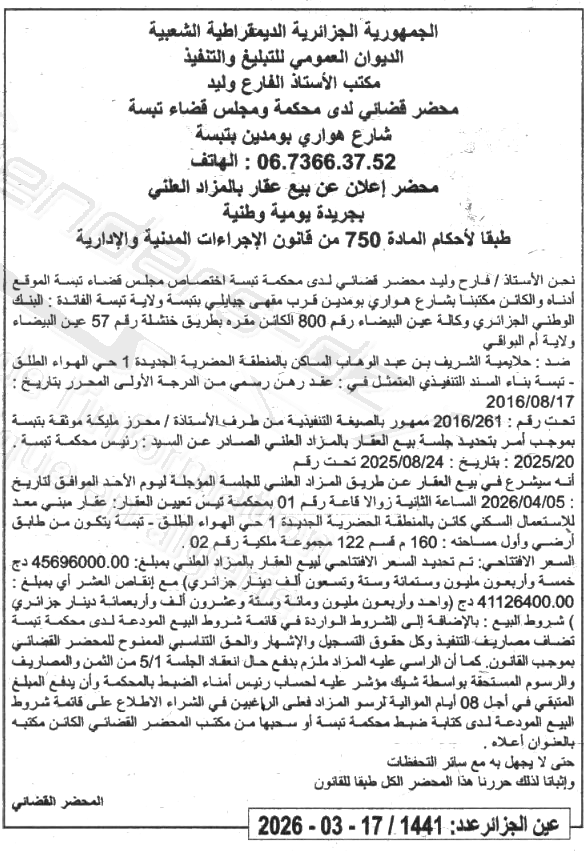 | Wilaya : Tebessa | |