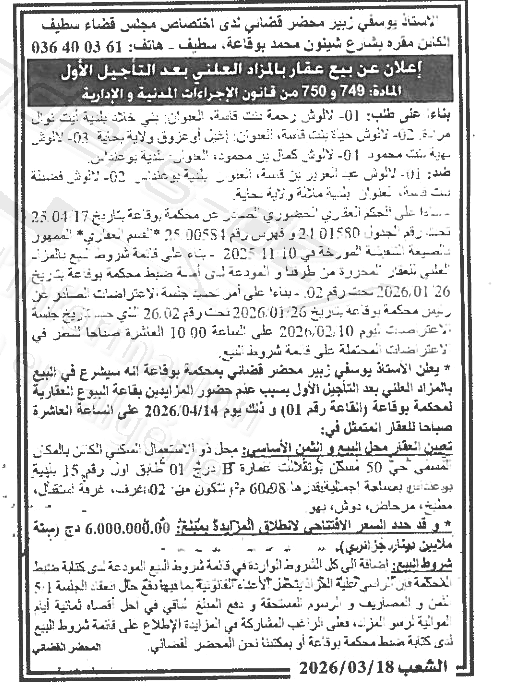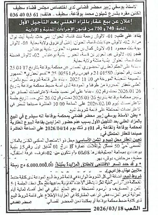 Il sera procédé à la vente au plus offrant et dernier enchérisseur le :