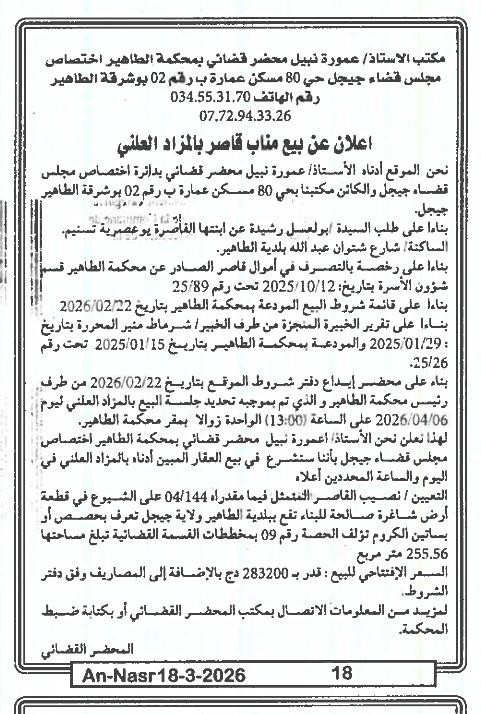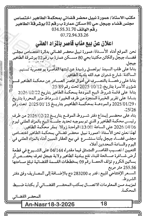 Il sera procédé à la vente au plus offrant et dernier enchérisseur le :