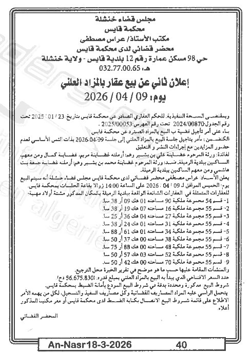 | Paru dans le journal : النصر | |
