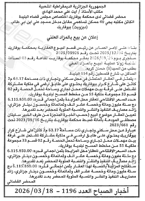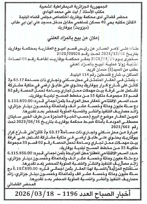 Il sera procédé à la vente au plus offrant et dernier enchérisseur le :
